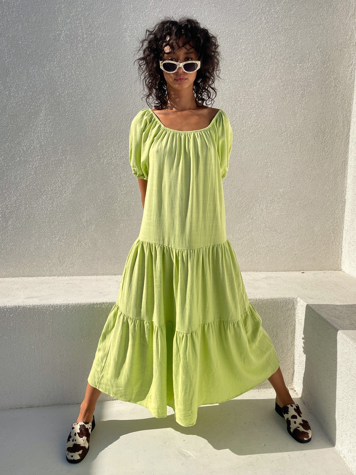 Urban Outfitters Little Lies Resort Linen Tiered Midi Dress, $, available at Urban Outffiters