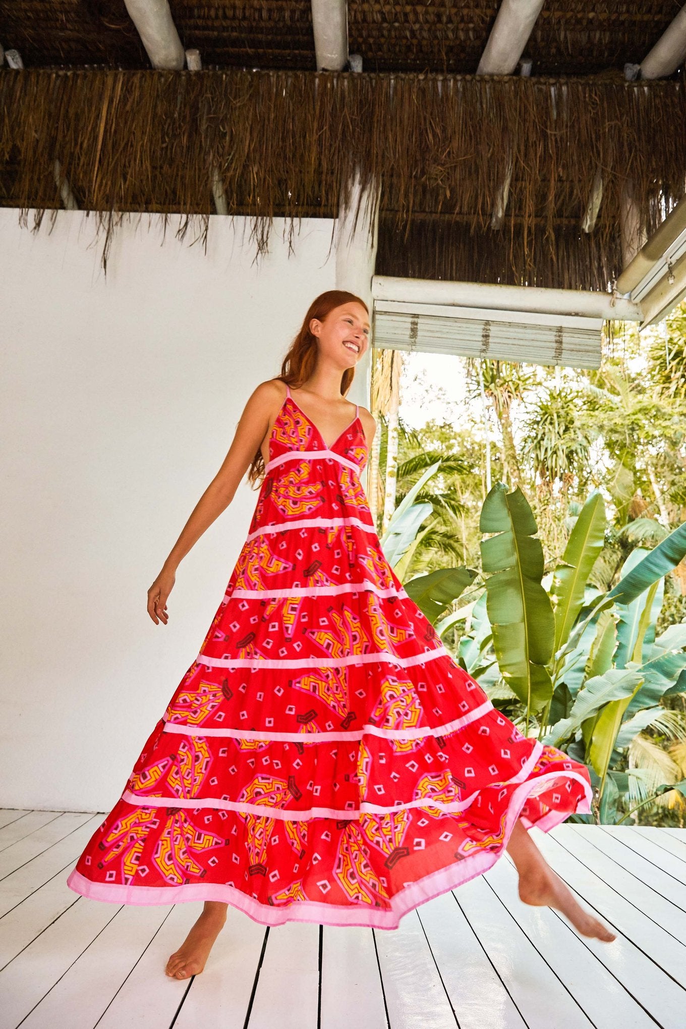 Farm Rio Red Bananas Maxi Tiered Dress, $, available at Farm Rio