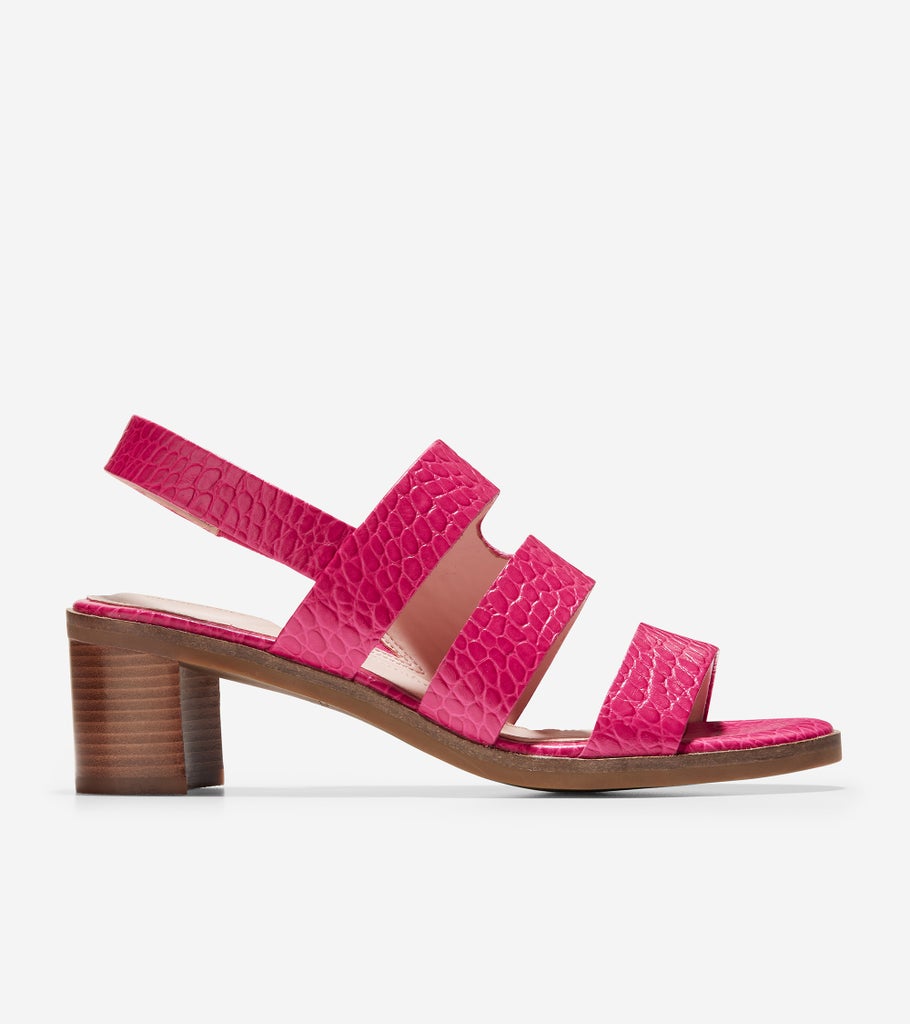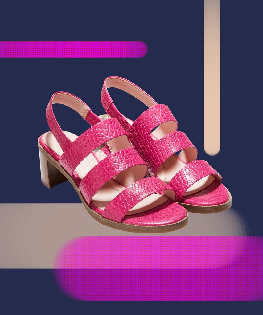 Hot pink gets the cool treatment thanks to some well-placed croc-effect detailing on these top-rated leather sandals. The stylish lift of the two-inch heel is balanced out with the comfort of a rubber outsole and (you guessed it) cushioned GRANDFØAM footbed.