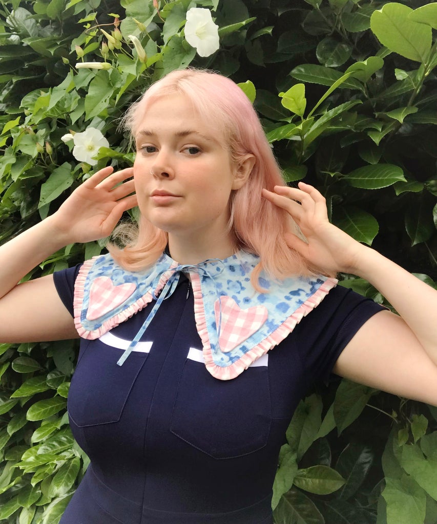 On Wednesday, Ganni announced a new partnership with Gen Z’s favorite online marketplace Depop, featuring the Danish brand’s signature oversized Peter Pan collars. For this collaboration, the two brands tapped six women designers and creatives from the Depop ecosystem, including English singer-songwriter Griff, to rework collars from past Ganni collections.