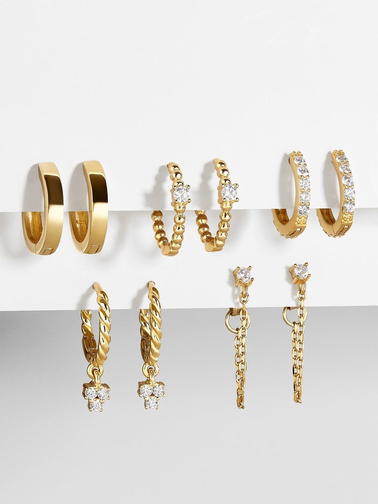Crafted from 18K gold vermil and their iconic cubic zirconia, this earring set is perfect to gift your best friend or to start your own layered collection. From classic gold hoops to shiny trending pieces, you won’t be disappointed by this set.