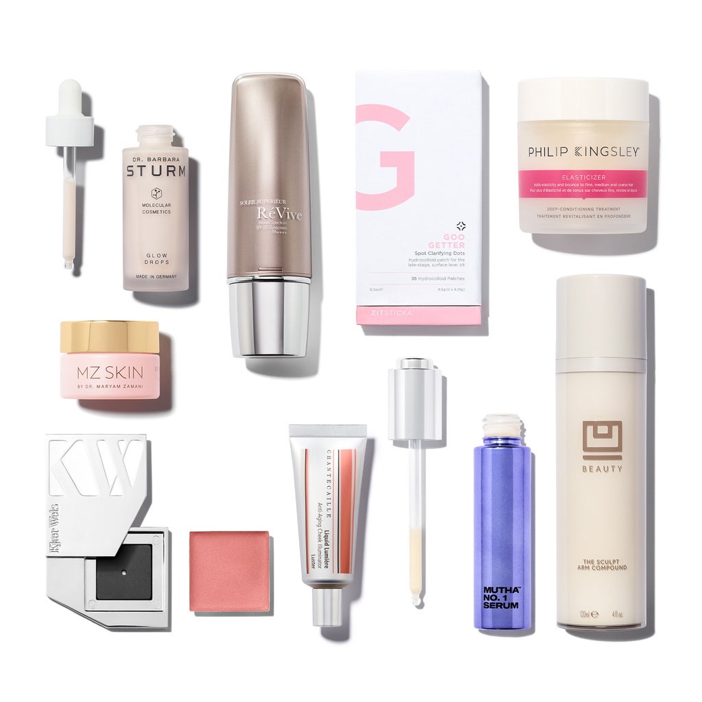 Dr. Barbara Sturm: Glow Drops, MUTHA: No. 1 Serum, Philip Kingsley: Elasticizer, MZ Skin: Soothe & Smooth Collagen Activating Eye Complex, Kjaer Weis: Cream Blush Refill, Kjaer Weis: Cream Blush Compact, U Beauty: The Sculpt Arm Compound, ZitSticka: GOO GETTER, Chantecaille: Liquid Lumière, RéVive: Soleil Superiéur Broad Spectrum SPF 50 Sunscreen PA++++