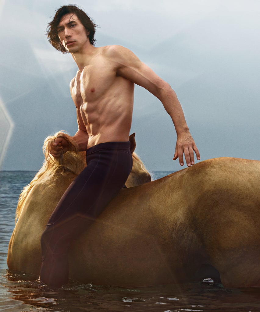 In the sensual, perplexing ad for Burberry’s new fragrance, Burberry Hero, a shirtless Adam Driver dramatically charges into the sea while FKA twigs’ “Two Weeks” plays. He appears to be racing (or running alongside?) a large horse. Both Driver and the horse proceed to swim underwater, side by side, and as the camera flashes between both, it becomes clear that somehow they have merged. We’re left with a final, shadowy shot of Driver, as a centaur, standing on the beach. Hot.