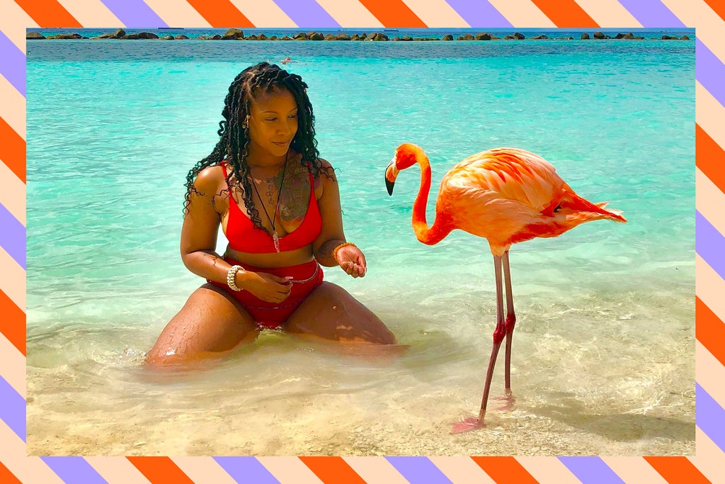 Tell us about your best travel experience. Going to Aruba with my roommate at the time. It was so beautiful. It was our first vacation we went on using our flight attendant benefits. My airline really takes care of their employees — we fly for free domestically and for little-to-nothing internationally. We went to Flamingo Island and laid out on the beach all day.