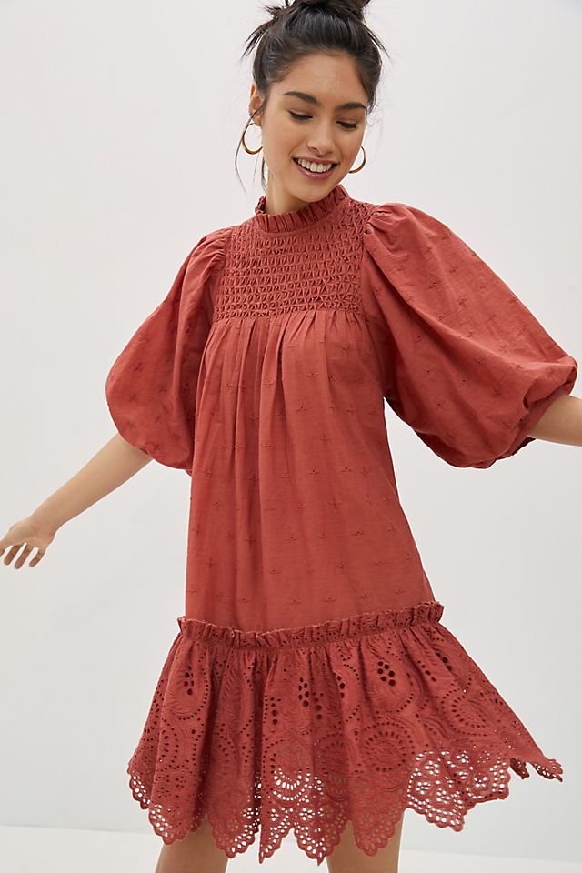 Anthropologie Ruffled Pointelle Mini Dress, $, available at Anthropologie