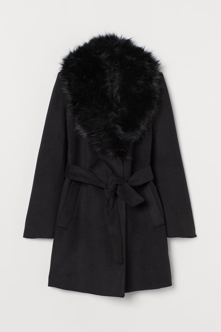 H&M Coat with Faux Fur Collar, $, available at H&M