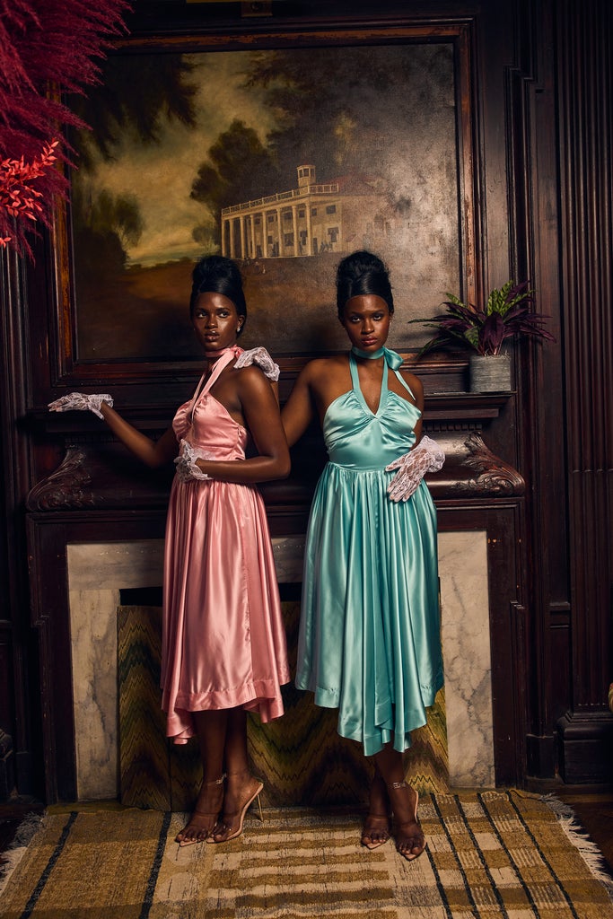 The brand, which has operated on a made-to-order basis and utilizes organic fabrics to reduce its carbon footprint since its founding in 2013, has long used archival research and personal storytelling to inform its designs. In 2017, with the launch of their collection “Bloodroot,” inspired by their Southern heritage and the post-Antebellum period, the two created an online platform for users to share their own personal and familial stories through folktales, quotes, and sayings. This dedication to looking to the past to create uniquely modern apparel has led House of Aama to become one of 10 CFDA/Vogue Fashion Fund finalists, alongside brands like Batsheva, Hanifa, Eckhaus Latta, and Willy Chavarría.