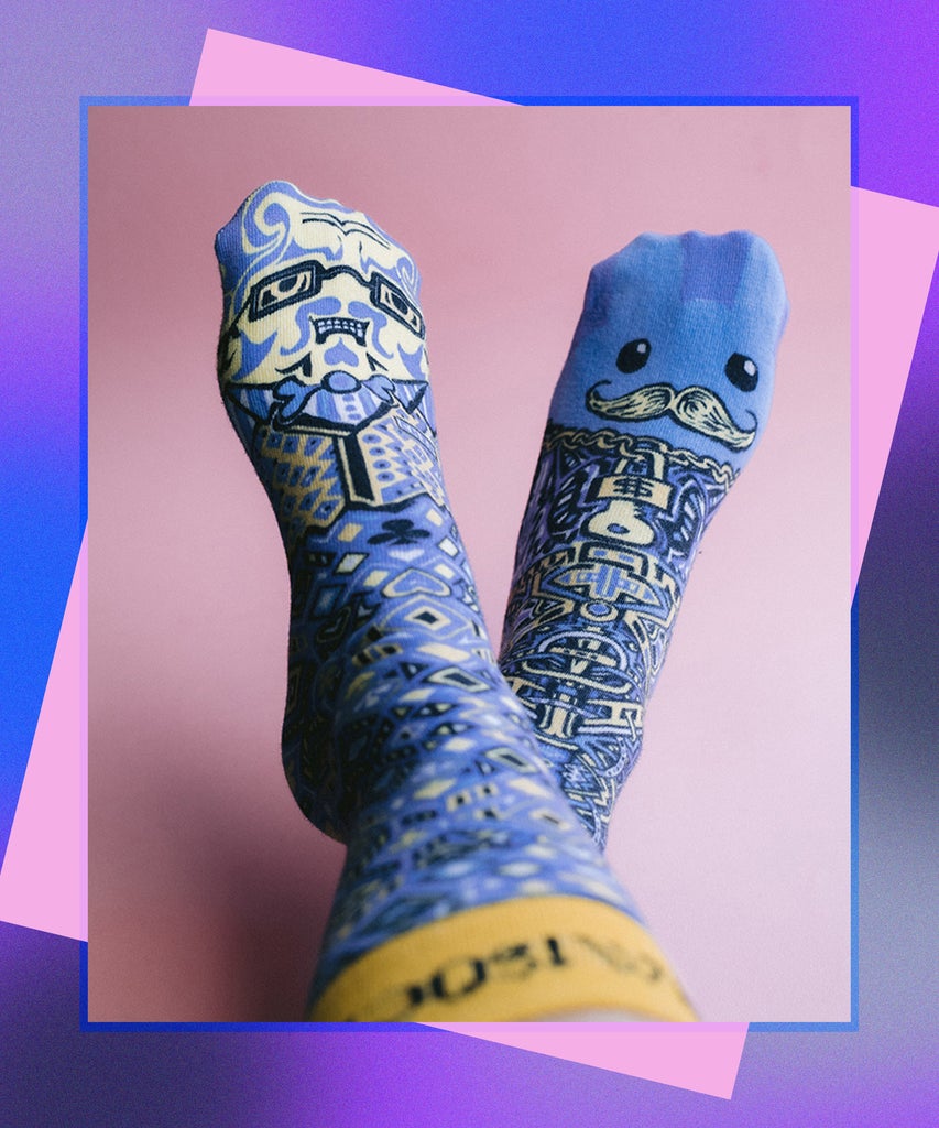 Taneja partnered with artist A. T. Pratt to create the intricate world of MrMiSocki. Each pair comes with its accompanying comic strip, which tells of Socki — our protagonist — and his adventure to search for his missing sock partner. The brand has even collaborated with Kidrobot to introduce Labbit into the story with, of course, its own accompanying sock. Is your interest piqued? Keep scrolling to see what other funky socks wearers have to say about their purchase.