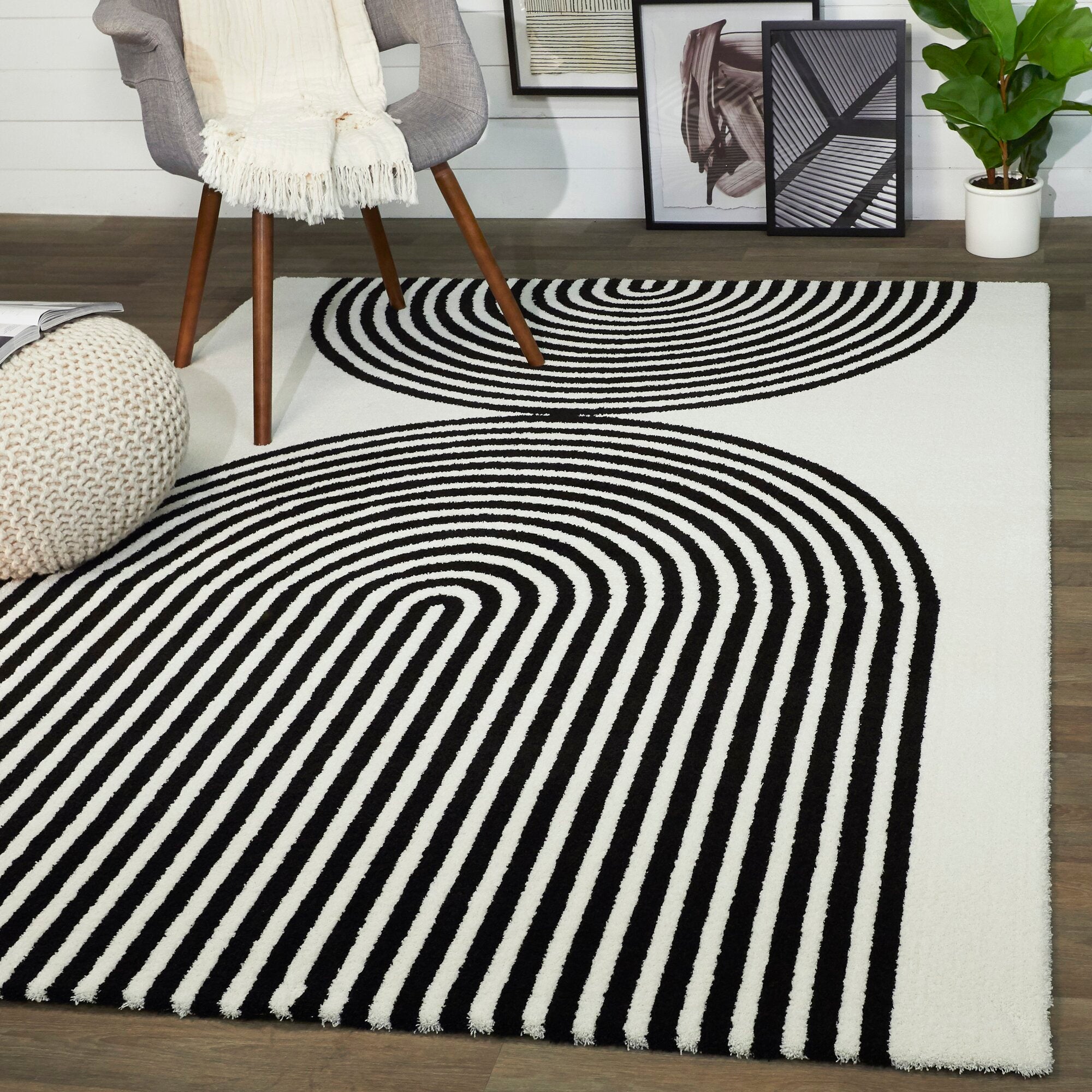 Not all funky rugs need be wildly colorful. Just consider this geometric gem from Wayfair! Blanket up to almost 8' x 10' of your space with this slice of carpet and enjoy its bold yet minimalistic home decor charms.