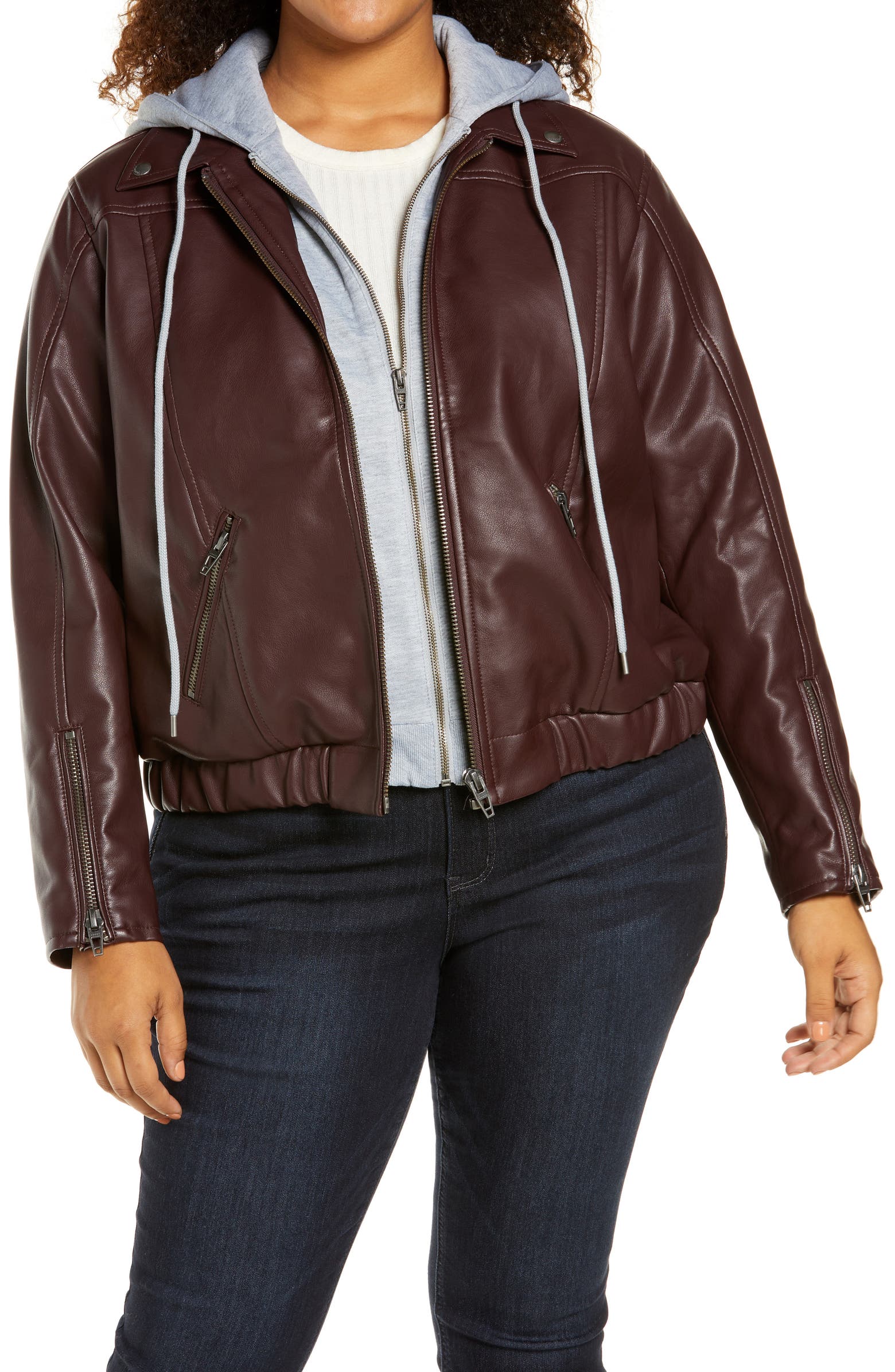 BLANKNYC Faux Leather Bomber Jacket with Removable Hood, $, available at Nordstrom