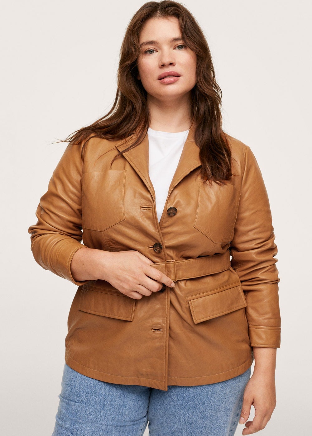 Mango Plus-Size Belt Leather Jacket, $, available at Mango