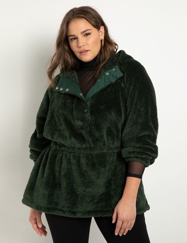 Eloquii Fuzzy Pull Over Jacket, $, available at Eloquii