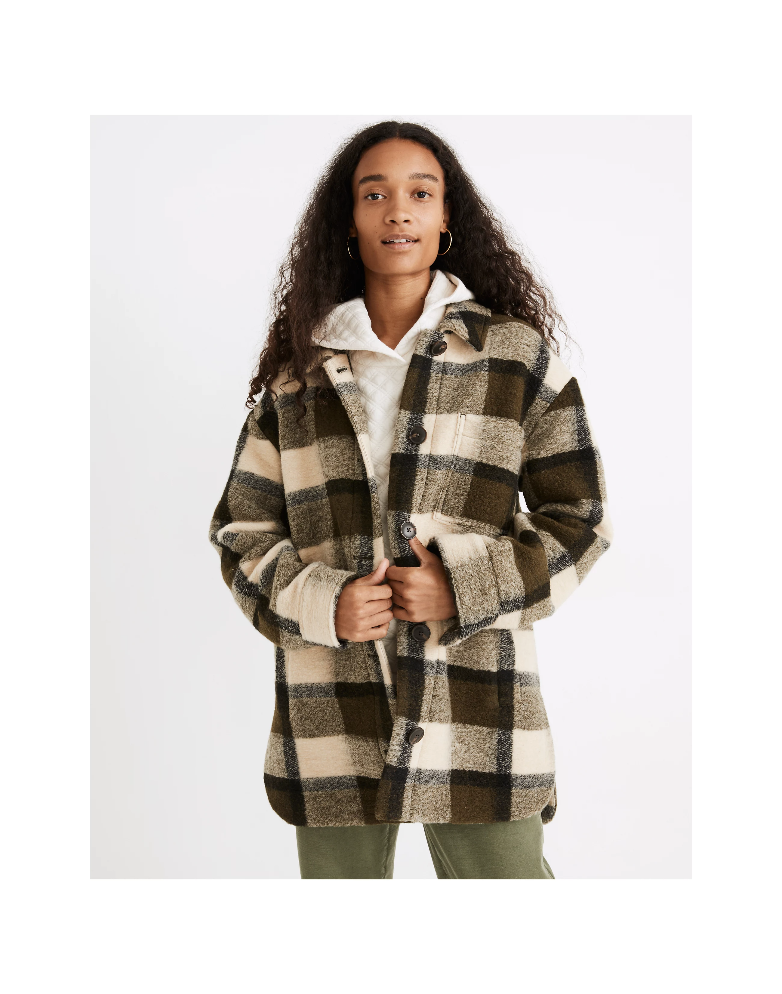 Madewell Belrose Shirt-Jacket in Maran Plaid, $, available at Madewell