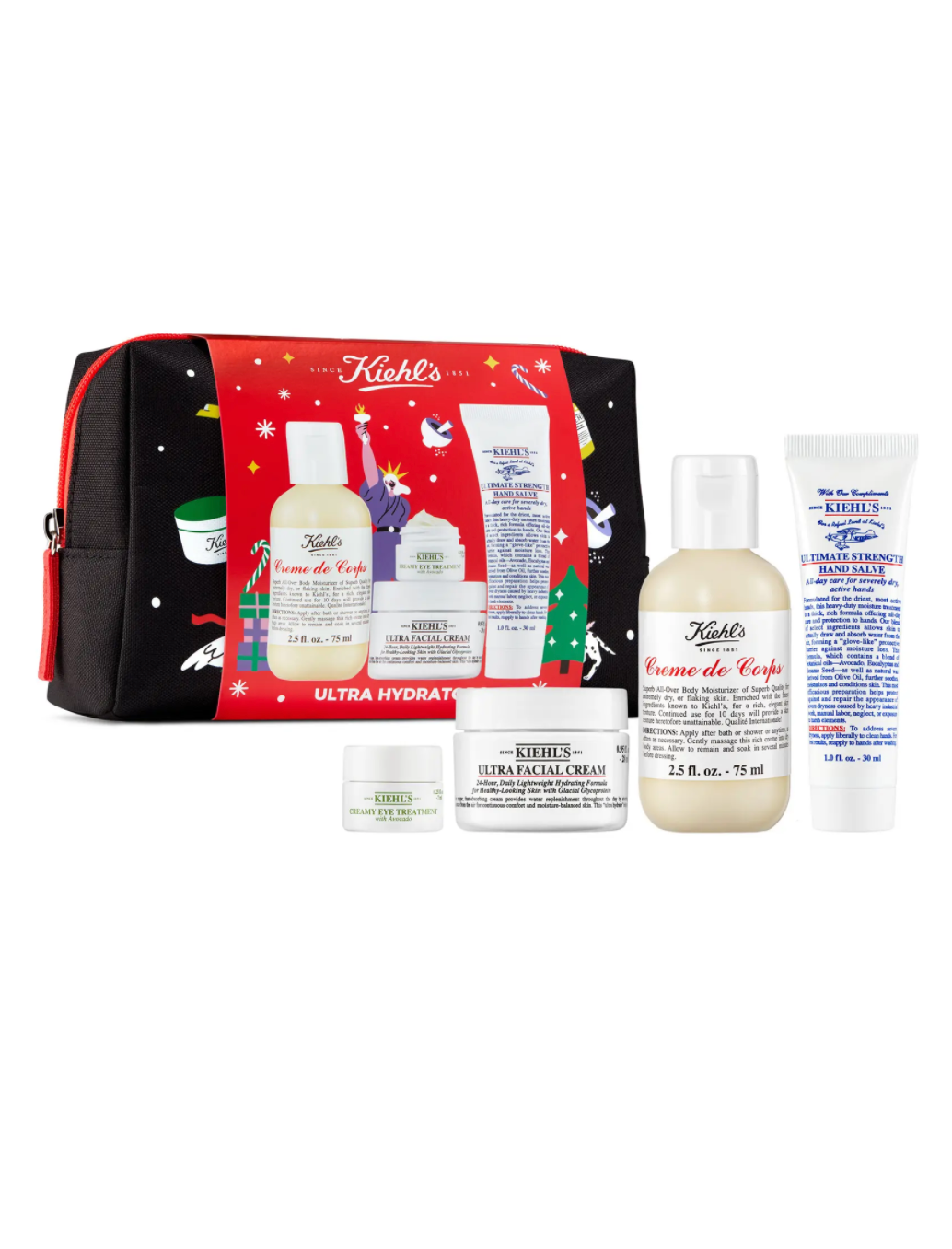Hydrate from head to toe with this set of Kiehl's lotions for face, body, and hands — all encased in a festive zip pouch.