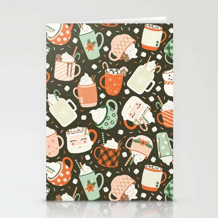 Allison Romero Design Christmas Cocoa Stationery Cards, $, available at Society6