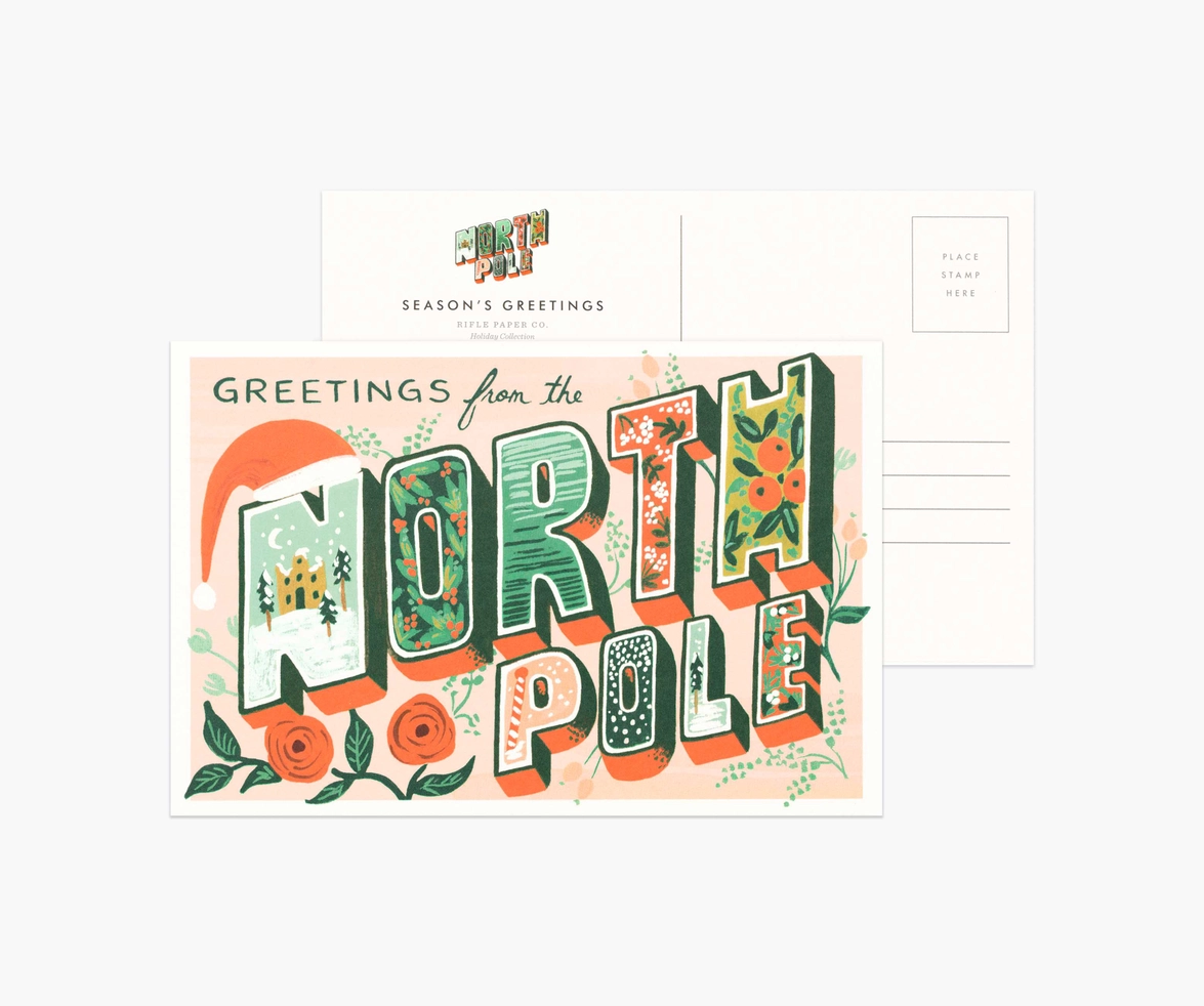 Rifle Paper Co Greetings From The North Pole Postcard Set (10), $, available at Rifle Paper Co
