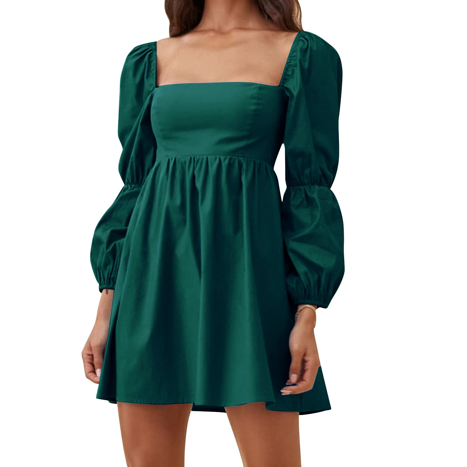 Exlura Square Neck Puff Sleeve Mini Dress, $, available at Amazon