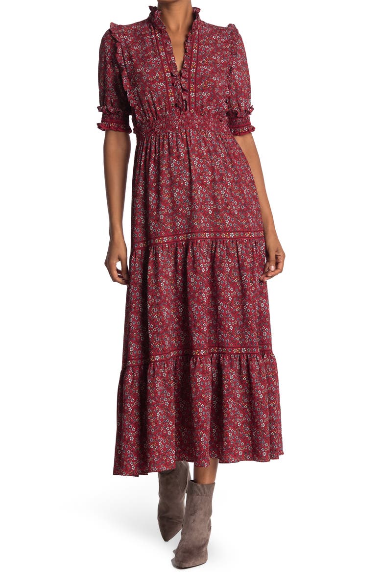 Max Studio Elbow Length Sleeve Print Tiered Maxi Dress, $, available at Nordstrom Rack