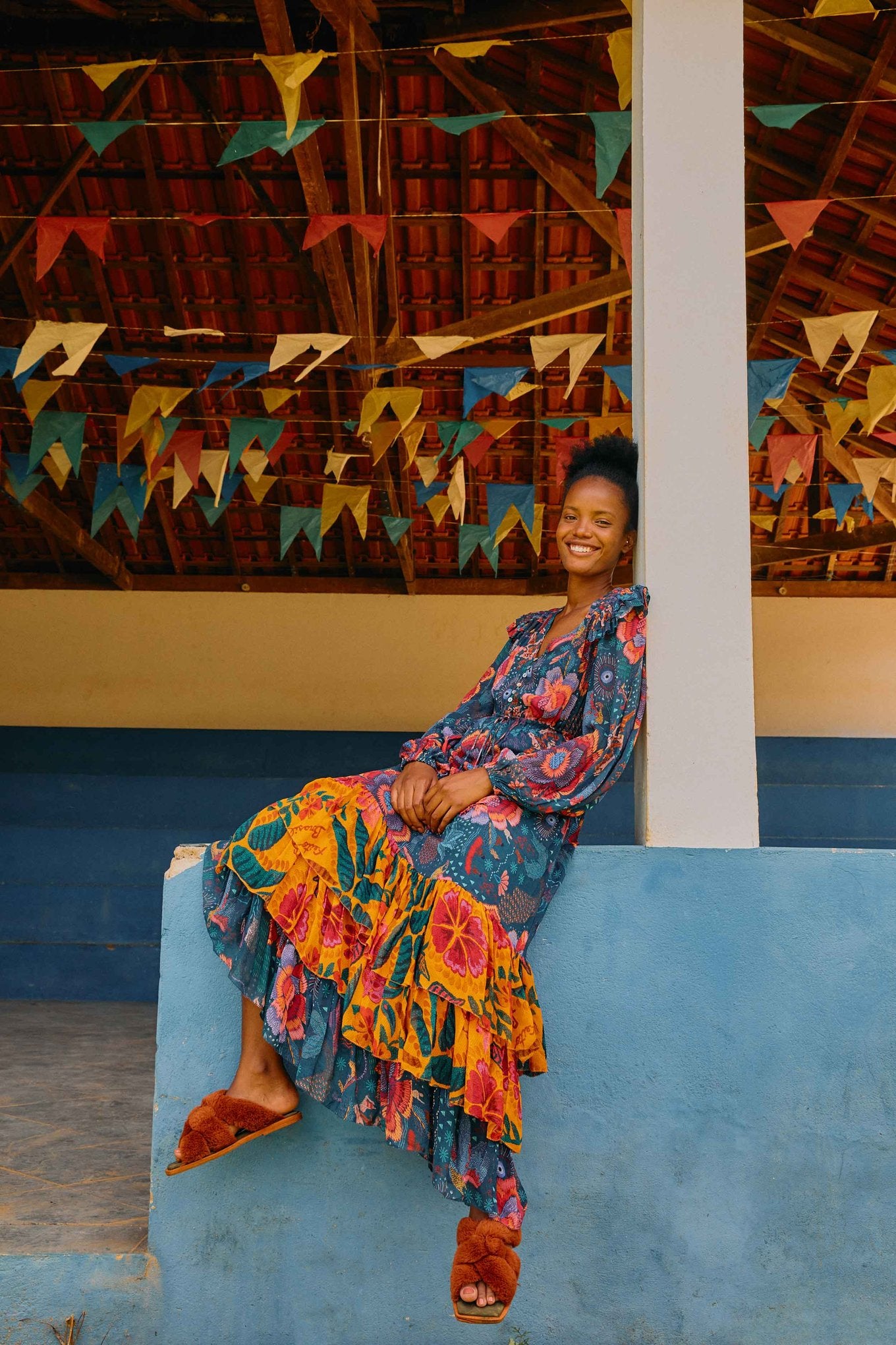 Farm Rio teal river creatures mixed maxi dress, $, available at Farm Rio