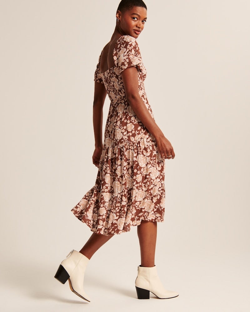 Abercrombie and Fitch Short-Sleeve Smocked Midi Dress, $, available at Abercrombie and Fitch