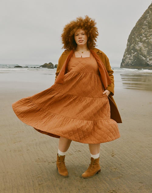 Madewell Quilted Aidy Square-Neck Tiered Midi Dress, $, available at Madewell