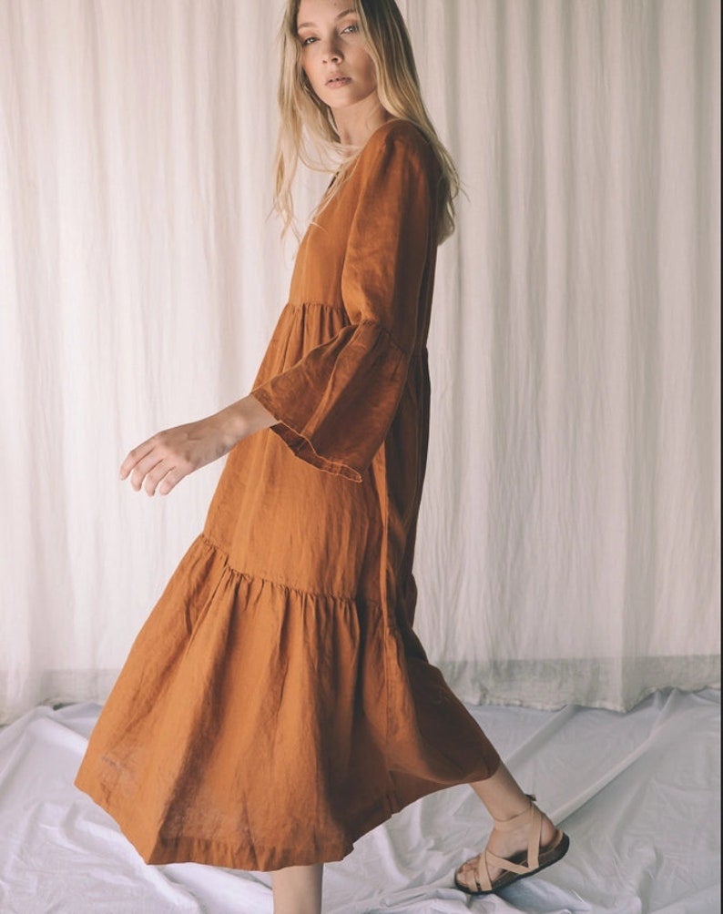 BlitheLinen Organic Linen Tier Dress, $, available at Etsy