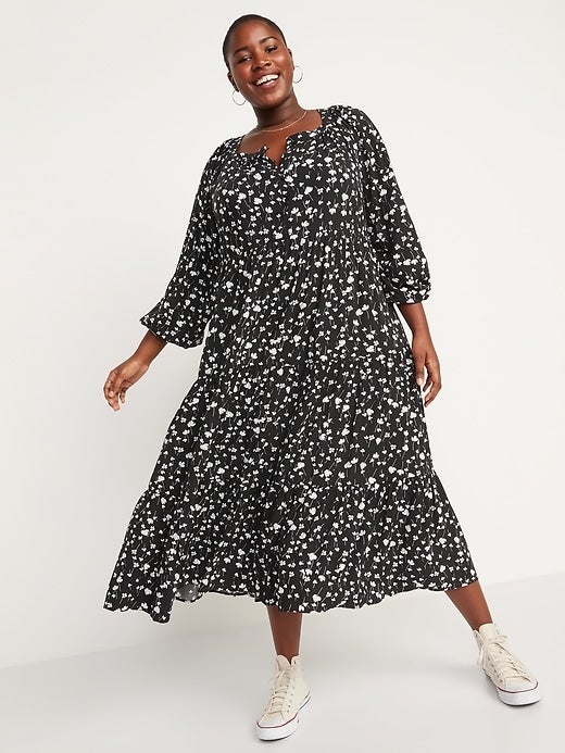 Gap Long-Sleeve Floral-Print Tiered Midi Swing Dress, $, available at Gap