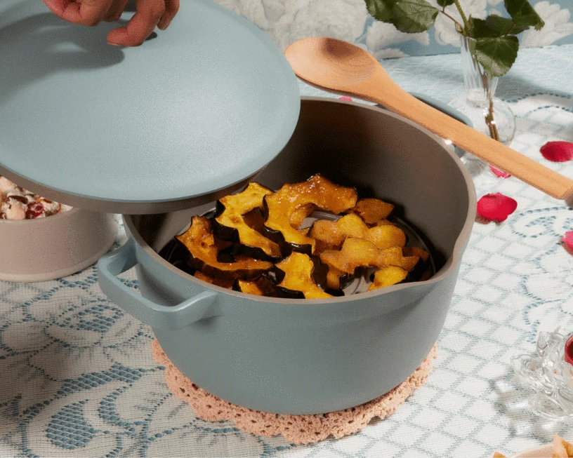 Or, for the practical cook who thinks Instant Pots are passe: Our Place's newest cult-favorite cookware creation, the Perfect Pot. This pretty new piece serves as a stockpot, Dutch oven, saucepot, roasting rack, steamer, bread pot, braiser, and spoon rest; giving cooks the very useful ability to to boil, crisp, bake, braise, roast, steam, strain, store, serve, pour, and steep whatever it is they've got on the menu.