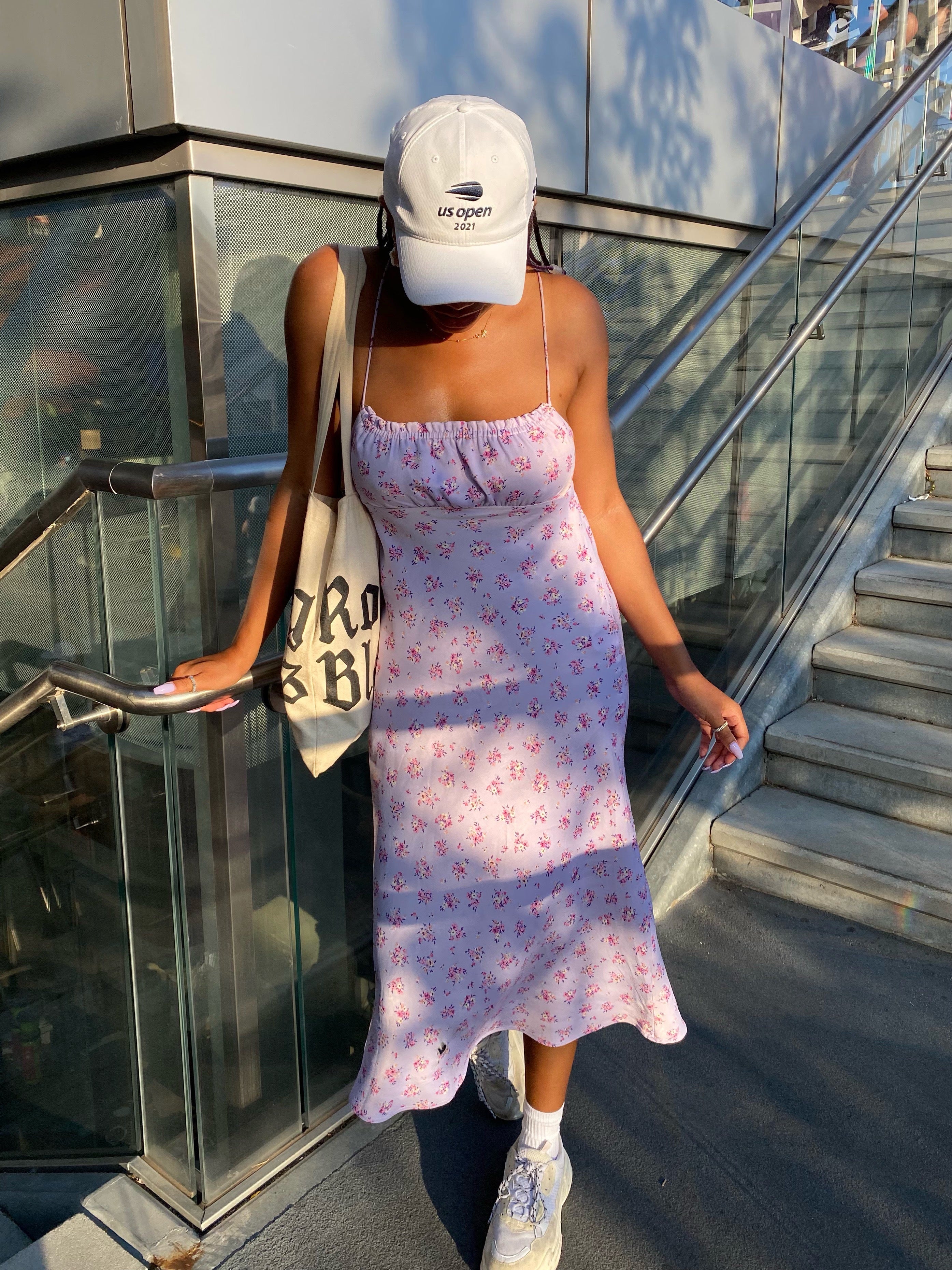"Summer dress season is dying down, but this lilac beauty would look great with a turtleneck popped under it, hence I bought it this month. I’m 5’ 8” and the medium falls perfectly around my ankles. It’s super comfortable and isn’t flimsy — the fabric has some weight to it so you don’t have to worry about it flying all over the place. I wore it to the US open and I was comfortable all day." — Alexandra Polk, Lifestyle Writer