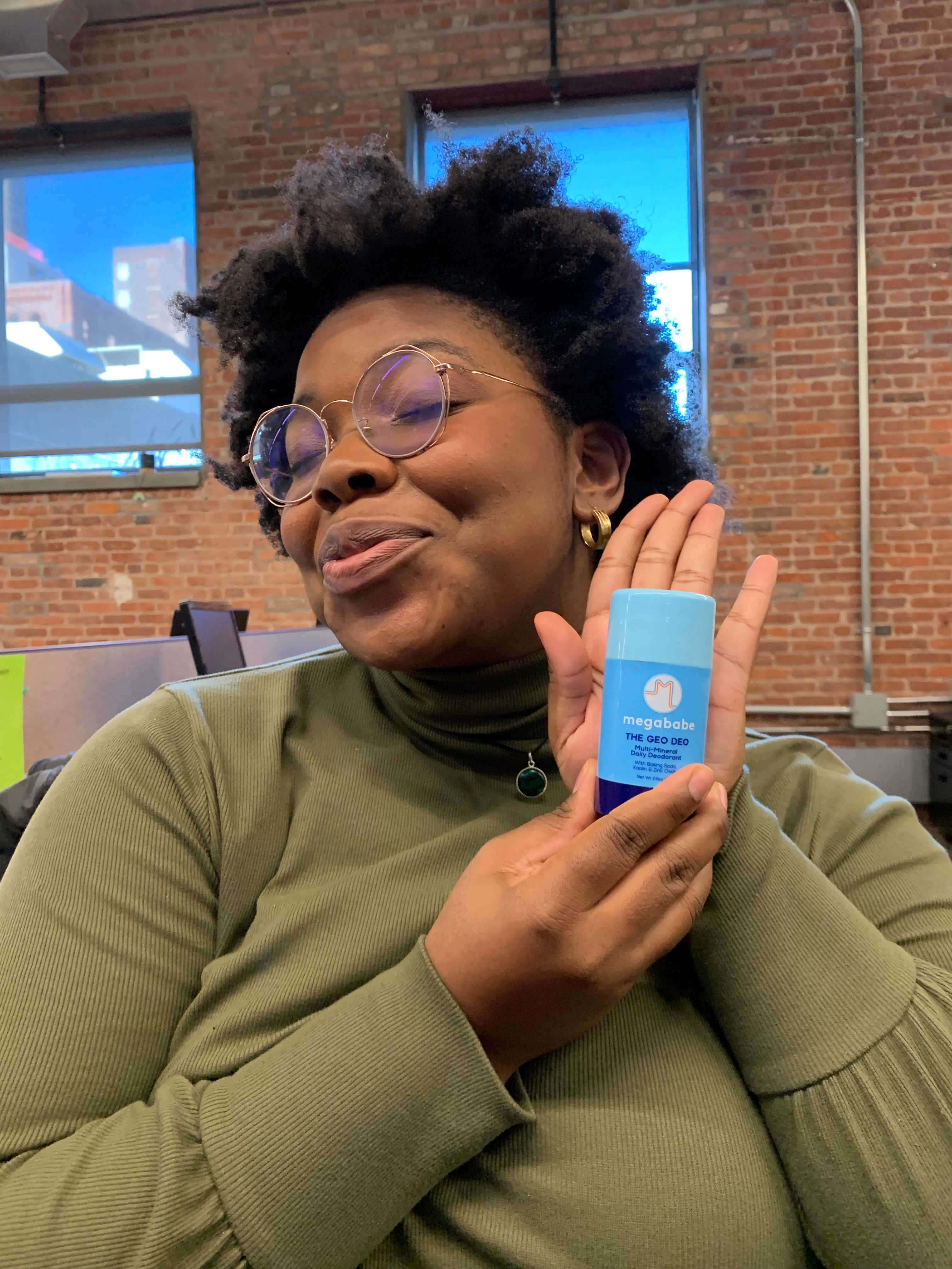 "I've had trouble switching to natural deodorant because finding one that was strong enough to combat my natural body odor has been a difficult feat. However, Megababe's line of natural deo does the job. Especially this blue one! It's the first one I've felt confident wearing without needing to constantly reapply." — Chichi Offor, Associate Affiliate Writer