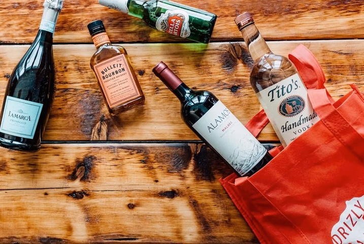 Postmates Alcohol delivery offers delivery of full-sized bottles of spirits as well as wines in select markets. Orders are fulfilled by local stores.