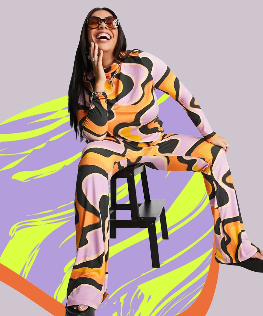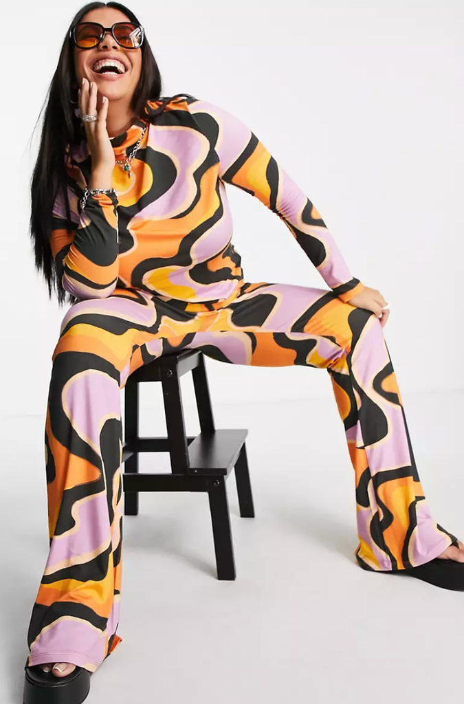 ASOS Design Curve Roll Neck & Wide Leg Swirl Pants Set, $58