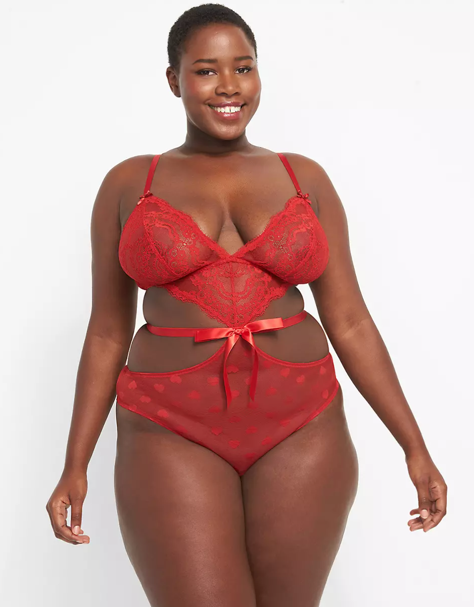 Bare Necessities is on the pulse of fat girl lingerie. The brand offers a pretty large range of styles from a variety of brands, with most going up to a 3X. This burgundy teddy is very flirty and simple at the same time. You can't go wrong with this V-day design — a festive bedroom essential!