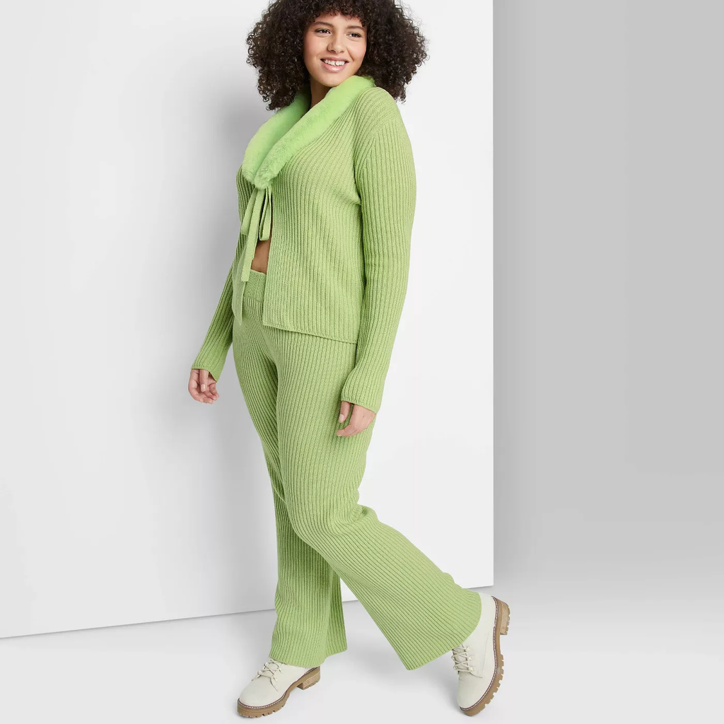 What’s better than a co-ord set that screams retro vibes? Nothing. Embrace throwback style with this tie-front faux fur cardigan and matching pants. Comfy can be cute — and this get-up is all the proof you need.
