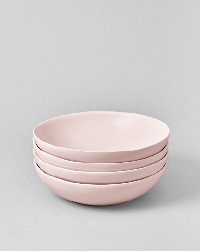 Things that I have happily eaten myself and served to satisfied guests (compliments always ensuing) inside these bowls: oatmeal, cereal, scrambled eggs, breakfast sandwiches, lunch sandwiches with sides of chips, soups, stews, endless amounts of pasta, Easy Mac, Thanksgiving leftovers, grain bowls, salads, roasted veggies with chicken, heaps of ketchup-drenched nuggets, popcorn, pie with ice cream, cake with ice cream — the list goes on. These bowls seamlessly transition from fancy tablescapes and elevated Italian fare to informal couch sessions with Flamin’ Hot Cheetos. They’re delicate in appearance yet substantial in practice; surviving countless dishwasher cycles and careless handling without any chips to show for it.