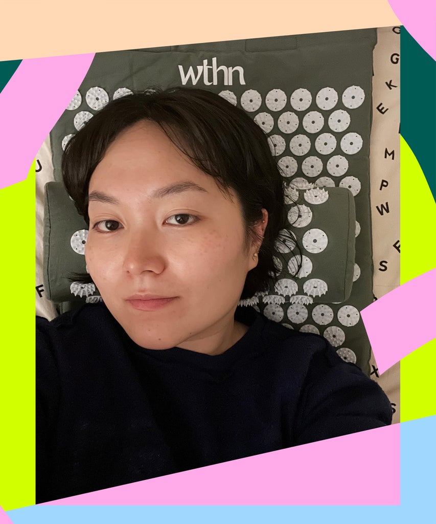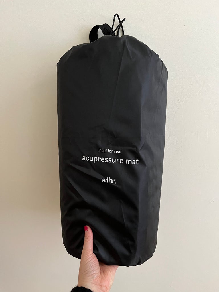 In an effort to regulate my back pain better and as a preventative measure, I decided to test drive the $65 Acupressure Mat Set from WTHN, an NYC-based acupuncture studio and a holistic healing brand rooted in Traditional Chinese Medicine after seeing its stats. It’s currently ranking a 4.5 out of 5 stars and 51 reviews, and WTHN co-founder Dr. Shari Auth, Chief Healing Officer, told Refinery29 that “the Acu Mat has been a huge hit” and has sold out over four times since it debuted in the peak-covid era of August 2020. “It’s a gender crossover product for us, which is super exciting. You know, wellness tends to be dominated by women, both by consumers and practitioners, and this product really [found its way into] men’s health. I think it really speaks to people wanting to take control of their own health and looking for more home solutions.” And, NBD, but Dr. Auth mentions the acu mat is also “loved by celebrities and influencers including Kourtney Kardashian, Sophia Roe, Tinx, and more.” (Celebrities…they’re just like me?)