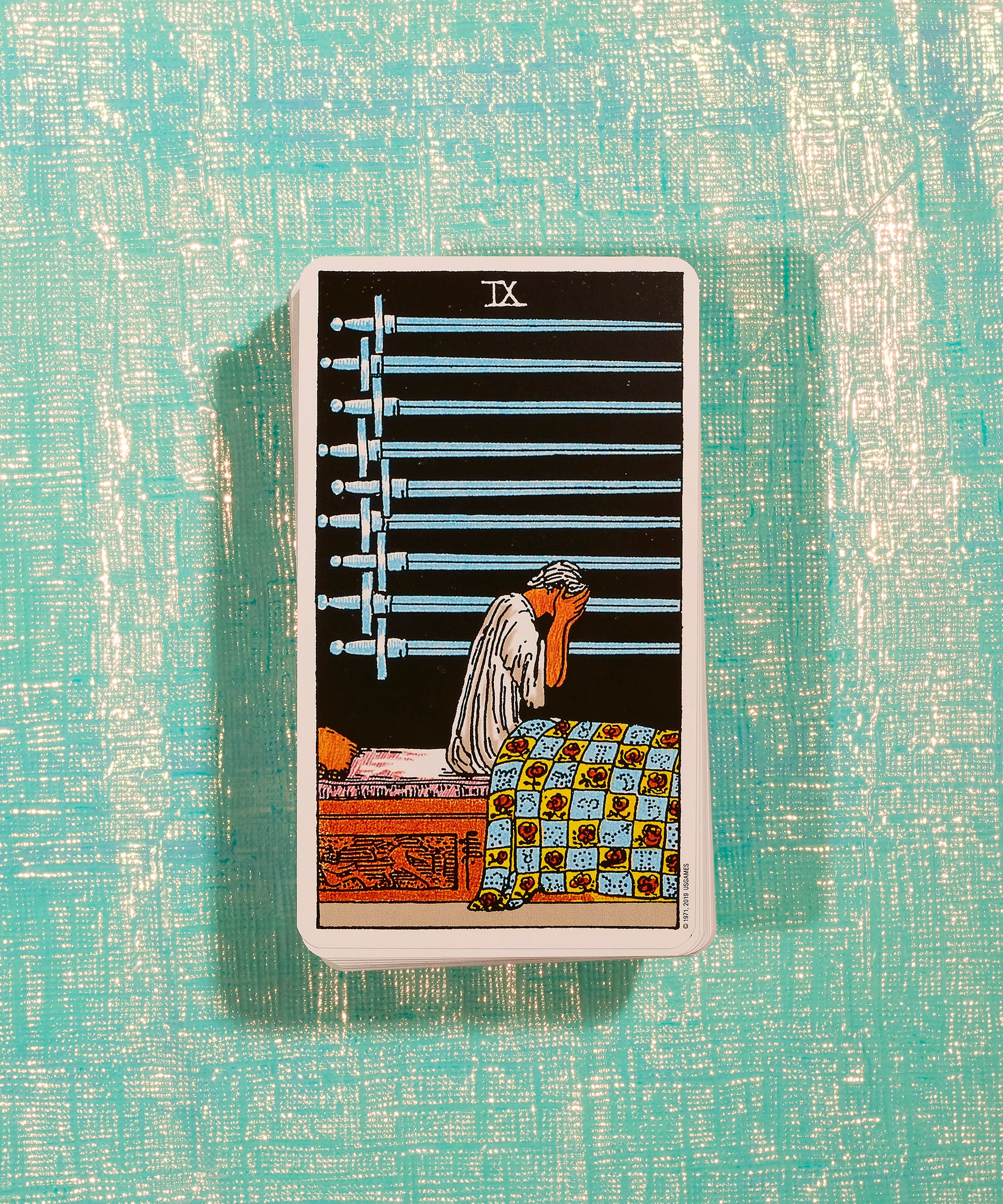 We're not going to sugar coat this — the 9 of Swords is a challenging card. "This is the card of our fears, our anxieties," Potter says. "This card makes me think of when you can't sleep at night because you're up ruminating, obsessing, over-thinking."Don't panic! Although not ideal for Valentine's Day, our fears and anxieties never truly leave us. This card is acknowledging those difficulties, and is pushing us us to ask ourselves if we're truly happy with where we're at right now. "This is your moment to acknowledge those feelings in order to feel them, but also make changes," Potter says. "If you are single and wish to be in a relationship, or maybe you are attached and don't want to be anymore, or your needs are not being met, or it just isn't working out and you are not happy — whatever it is, it's probably much worse in your head because you are keeping it to yourself and overthinking it."