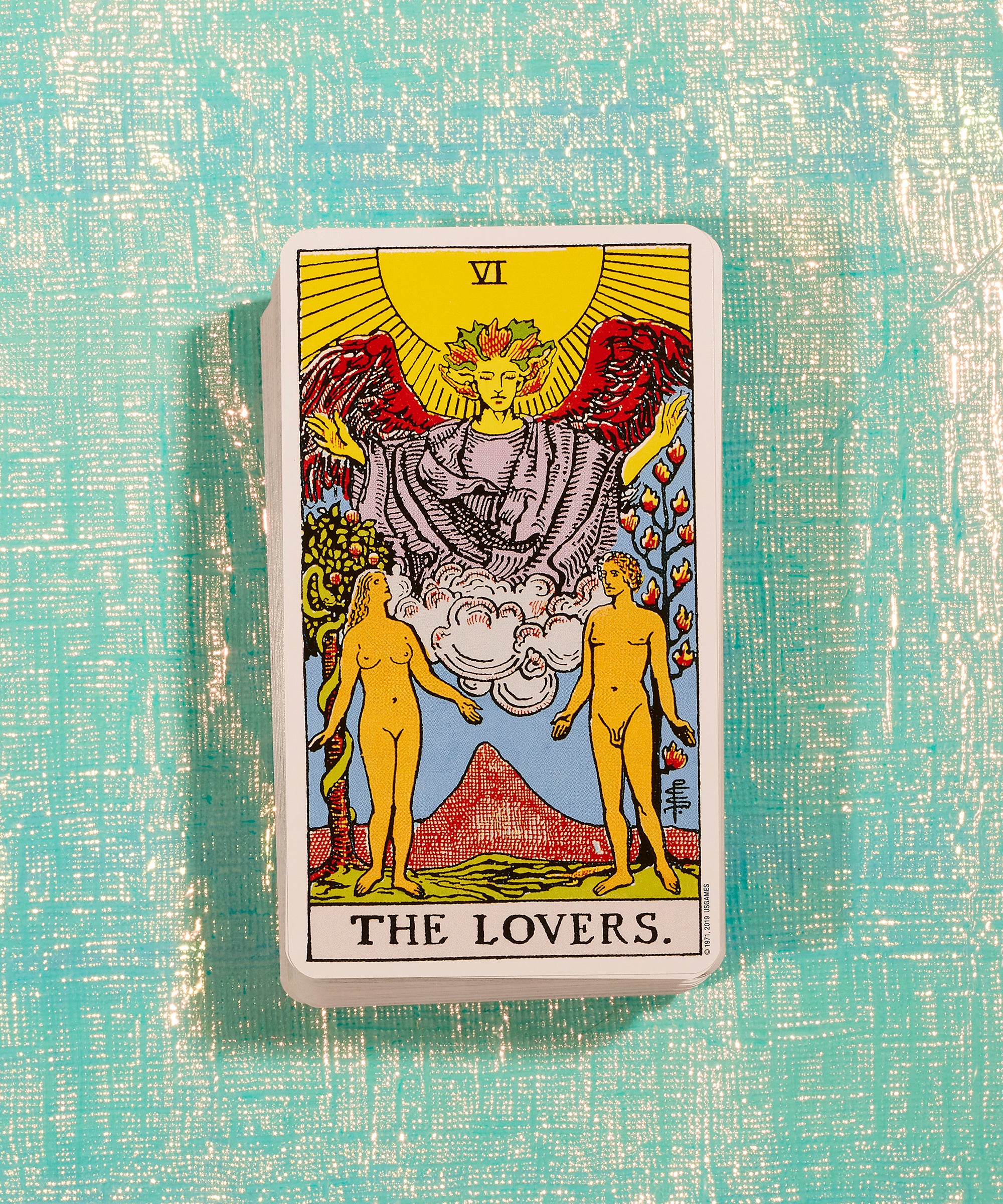 Before pulling the first card, Potter reminds me that every year is associated with a universal tarot card. This year's card? The Lovers.If this seems a little too on the nose, remember: This card isn't just about romance. "It's about partnership and connections and relationships, but it's also about the choices we make and the decisions we make based on our personal values," Potter says. "I feel like last year was a pretty challenging year for everyone, and then that made connections and romance and relationships extra challenging."