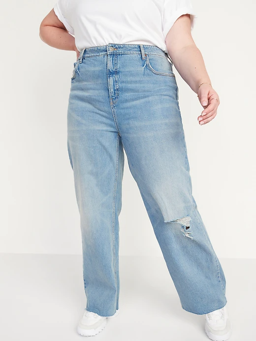Old Navy Extra High-Waisted Sky Hi Ripped Wide-Leg Jeans for Women, $, available at Old Navy
