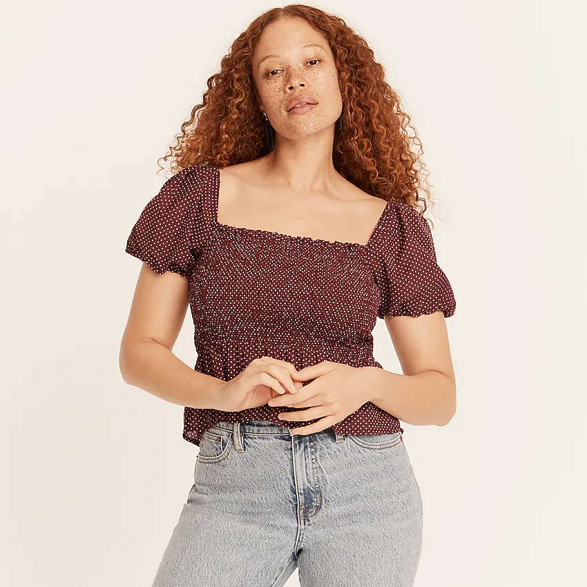 J.Crew Squareneck smocked cotton voile top in dot, $, available at J.Crew