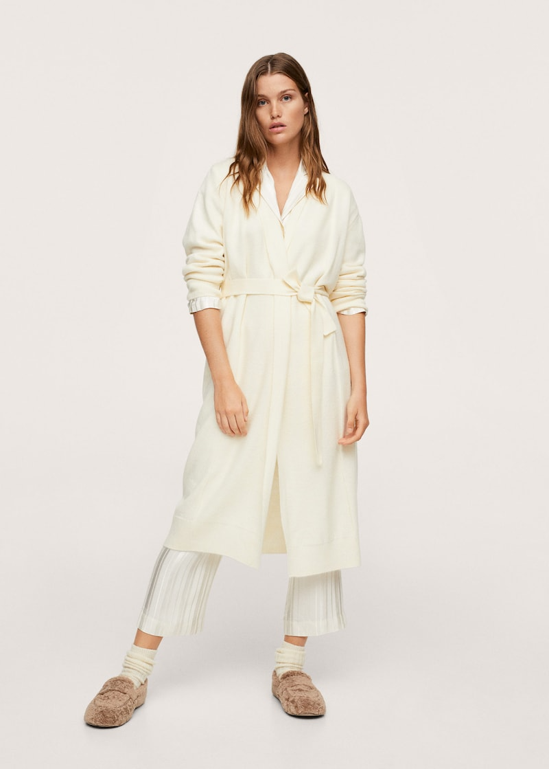 A cream-colored knit robe is a perfect gift for a family member, friend, or yourself.