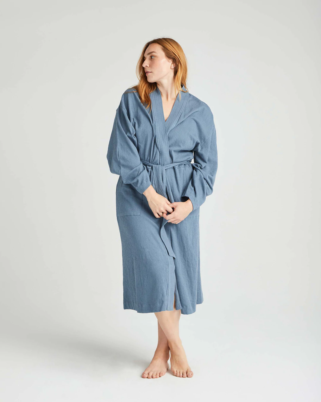 This breathable organic cotton waffle robe is cool enough for warmer months, but cozy enough for the cooler seasons.