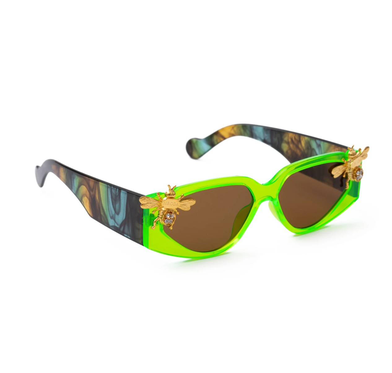 Available in an assortment of the kinds of colors you’d find in a Skittles bag, these statement sunnies handmade in New York City promise to turn heads, from the desert valleys of Los Angeles to the concrete streets of Manhattan.