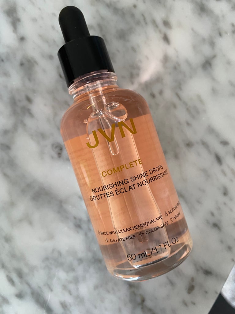 Even though I’ve worked in beauty for years now, I’m actually pretty low-maintenance with my hair. I rarely heat style it, and even less frequently use any sort of product. The exception: A hair oil, which I rely on to hydrate and add luster to my brunette tresses. While I usually apply a few drops to damp hair, JVN’s Nourishing Shine Drops are meant to add an instant boost of shine to dry, styled strands. Compared to hair oil, these drops were more serum-like in texture but still felt ultra-hydrating. I applied a few drops to my palm and worked it into my ends and mid-lengths. The result: TV commercial hair that gleamed from the inside out. My highlights looked better, and my flyaways and frizz were shown the door. (According to the brand, hemisqualane is supposed to reduce frizz over an extended period of time.)