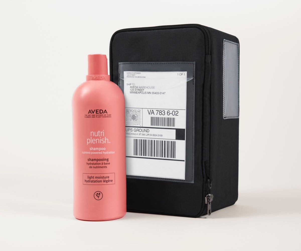 "To reduce packaging waste, Aveda sent my liter bottle of shampoo in a returnable shipping box (which was produced with a minimum of 35% recycled material) which I could send back to be reused (up to 20 times, and after that it can be fully recycled). The packaging was easy to disassemble and getting it out was super convenient thanks to a pre-paid shipping label.