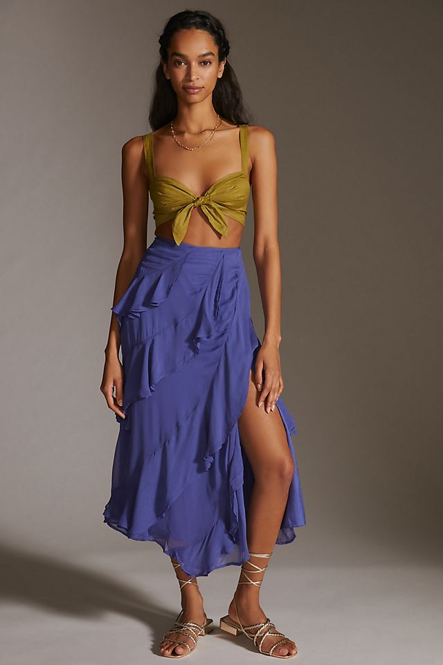 Anthropologie A-Line Ruffle Slit Midi Skirt, $, available at Anthropologie