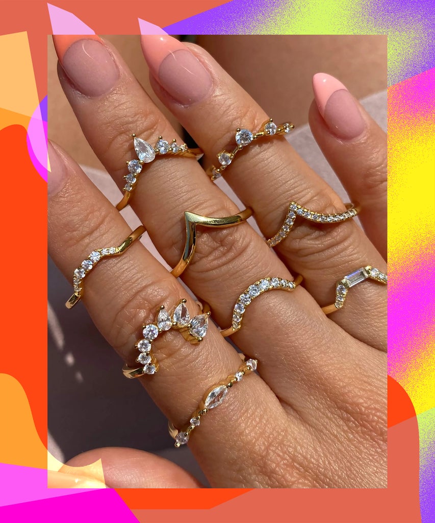 For the uninitiated, OBJKTS Jewelry (formally known as OBJEKTS) is “a contemporary jewelry brand on a mission to create high-quality, unique jewelry that is accessible to all.” The brand offers the usual smatter platter of gilded goods — necklaces, rings, earrings, and bracelets — all of which are designed with accents of diamond-like radiance that the CZ stones provide. Whatever your twinkle mood is, there’s a piece that will fittingly adorn you. You can shop for dainty stacking rings speckled with micro gems all the way up to bling-tastic statement hoops fully encrusted with the razzle-dazzle stones.