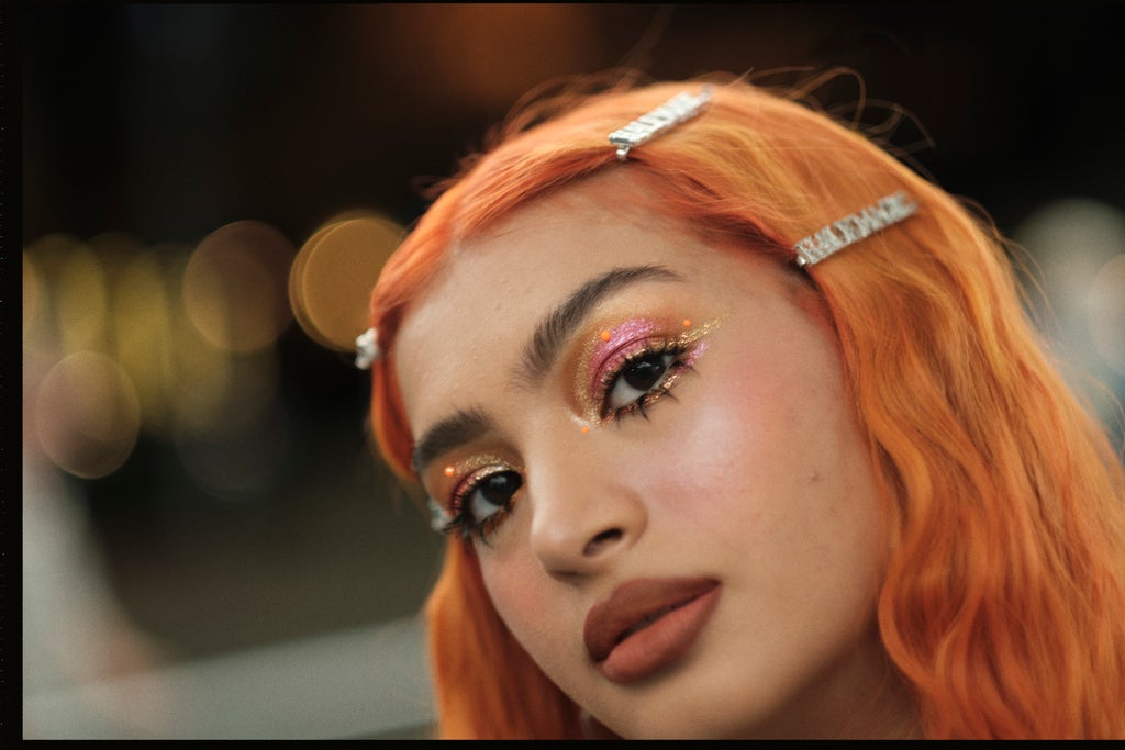 Really, Donni Davy doesn’t use a lot of makeup. There’s color and glitter and decals, if you want ’em, But other than eyes, cheeks, and lips, everything else bare. No foundation, concealer, bronzer, eyeliner, brow gel, or even a swipe of mascara. So there’s a lot of restraint. For Davy, she says it’s a focused kind of precision, but really, even if you just add a little glitter to your eyelids and a brighter, periwinkle blush, you might unlock a different side of yourself — me, I felt like taking selfies — but it will still feel like you.