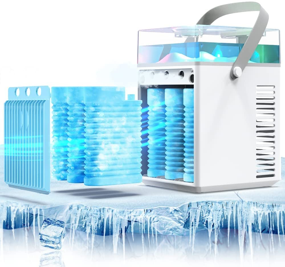 This three-in-one personal fan can be used as an air cooler, humidifier, and night light. It even comes with six ice-packs (three are replacements) to freeze and place inside behind its cover for the most crisp, chill air.
