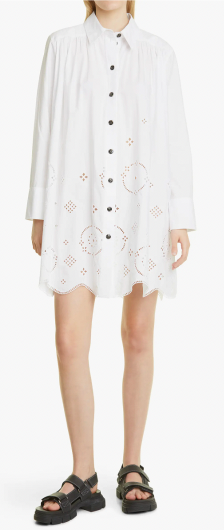 Ganni Long Sleeve Cotton Broderie Anglaise Shirtdress, $, available at Nordstrom